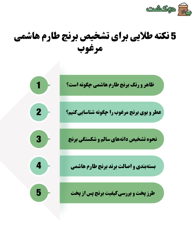 جدول نکات طلایی برای تشخیص برنج طارم هاشمی مرغوب